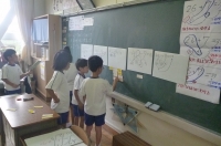 2校時目に2年生の算数の授業研究会がありました。42-7を工夫して計算しようという内容でした。黒板に出で自分の意見がきちんと言えた2年生。たくさん発表できてりっぱでした。