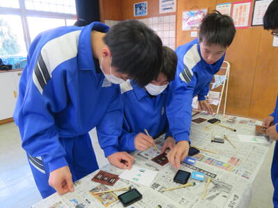 「手作り体験広場 番匠」で、”あかべぇ土鈴”や”祈願だるま”の絵付け体験をしました。生徒それぞれの完成のイメージをもって、友達と楽しく相談しながら行い、個性的な作品ができました。