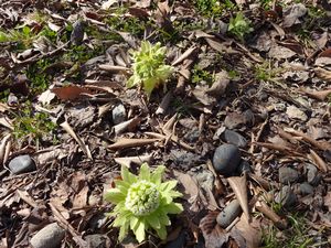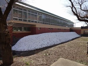 体育館北側の屋根から落ちた雪を残し,校地内の雪が消えました。グラウンドも使えるようになり,今週は野球部が外での練習を再開しました。校舎前庭の水仙のつぼみもふくらみ,ふきのとうも姿を見せていました。