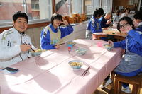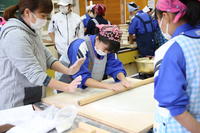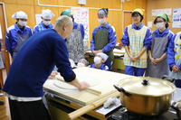 2019年12月3日 16時43分12月3日(火) 本日から3日間、学年ごとにそば打ち体験学習が行われます。本校では総合的な学習の時間の中で「そば学習」に取り組んでいますが、そば打ち体験はその締めくくりとして毎年この時期に行っています。講師には各学年の保護者の方からそば打ちに長けていらっしゃる方にお願いし、ご指導していただきます。3年生は今年で3回目でしたが悪戦苦闘のそば打ちでした。それでも、指導に当たられた田代さんが随所で助けてくださったお陰で、何とか子どもたち全員が自分たちで打ったそばで会食することができました。本日お手伝いに来てくださった4名の保護者の皆さんに心より御礼を申し上げます。