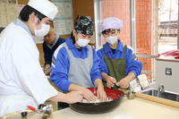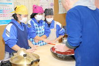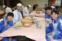 2019年12月4日 13時15分12月4日(水) 今日は1年生がそば打ち体験学習を行いました。講師には昨日に引き続きそば屋さんを営業されている田代さんご夫婦と、耶麻農業高校のグリーンメーキング部の生徒さん5人、引率の先生お一人をお招きして行いました。1年生は小学校の時にもそば打ちを経験したことがあるということでしたが、久しぶりのことだったので最初はおっかなびっくりという様子でした。しかし、講師の方々が手取り足取り丁寧にお手伝いしていただいたお陰で、予定よりも早くそばが完了しました。最後はみんなで自分たちが打ったそばを会食しました。子どもたちはどの子も満足げな表情でお腹いっぱいそばを堪能しました。2日間講師をしてくださった田代さんご夫婦と耶麻農林高校の生徒さん、引率の先生には心より御礼を申し上げます。