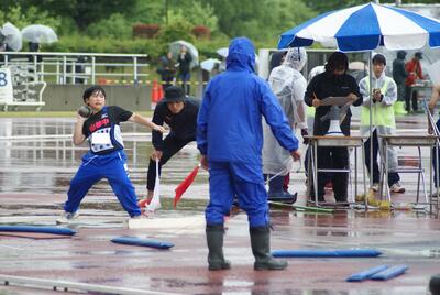 1日目の今日は、あいにくの悪天候でしたが、選手のみなさんは、冷たい雨に負けず記録に挑戦していました。